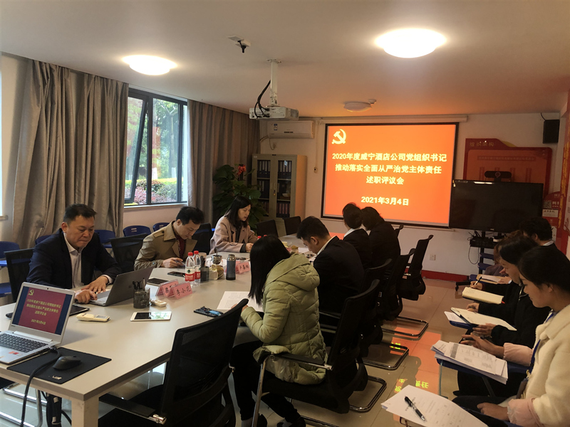 会议现场2021年3月4日上午,万搏在线(中国)唯一官方网站酒店公司召开2020年度基层党组织书记落实全面从严治党主体责任述职评议会,集团副总经理、万搏在线(中国)唯一官方网站酒店公司党委书记朱海主持会议,并作点评发言和总结讲话。会上,万搏在线(中国)唯一官方网站酒店公司党委下属4个党支部书记结合工作实际,围绕2020年度党建、党风廉政建设和意识形态工作取得的成绩、存在的问题和下一步工作措施进行现场述职。朱海对现场述职的支部书记进行了逐一点评,肯定了工作成效,提出了突