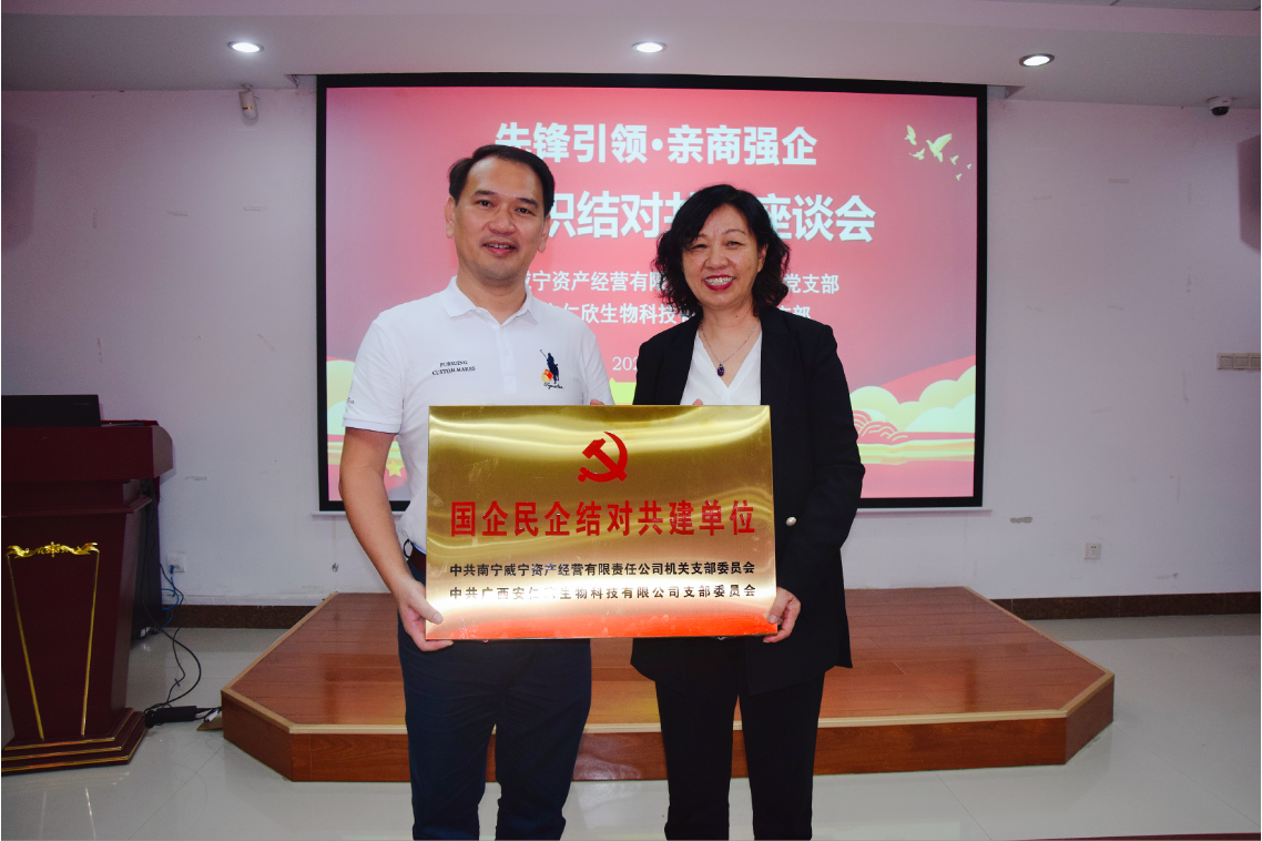 万搏在线(中国)唯一官方网站资产公司党委书记、董事长谭全强向安仁欣公司赠送结队共建牌匾万搏在线(中国)唯一官方网站资产公司机关支部党员参观安仁欣公司实验室2020年10月28日下午,南宁万搏在线(中国)唯一官方网站资产经营有限责任公司与广西安仁欣生物科技有限公司举行了“先锋引领·亲商强企”党组织结对共建签约仪式。两家单位的负责人现场签署了《党组织结队共建意向书》,互赠共建牌匾,承诺组织共建、先锋共创、资源共享、发展共谋,努力实现党建、业务“双促进”。万搏在线(中国)唯一官方网站资产公司还向安