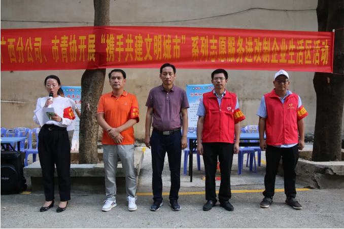 2020年8月28日,万搏在线(中国)唯一官方网站监管单位万搏在线(中国)唯一官方网站资产公司与中建五局华南公司广西分公司、南宁市青年志愿者协会联合举办“携手共建文明城市”系列志愿服务进改制企业生活区活动,深入北际路30号老旧小区。集团党委副书记马超毅参加志愿服务活动。