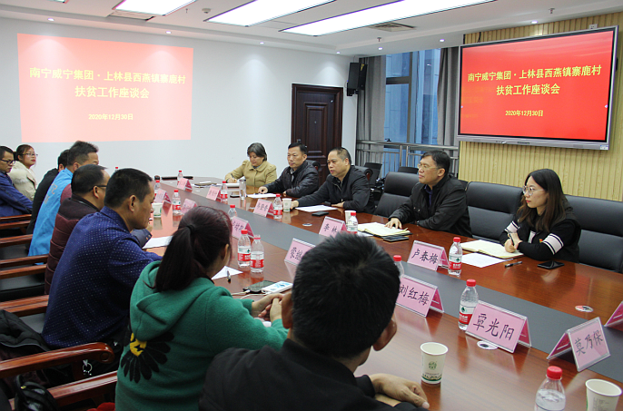 近日,集团与寨鹿村村两委成员举行决战决胜脱贫攻坚收官之战座谈会。集团纪委书记韦登香参加会议。