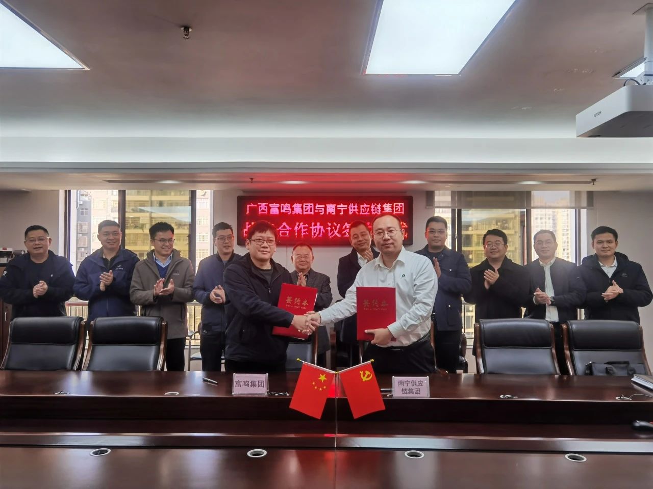 近日,南宁供应链集团与南宁市武鸣区人民政府直属国有独资企业广西富鸣集团举行战略合作签约仪式,并就后续深化合作开展座谈交流。此次南宁市属平台公司与武鸣区平台公司强强联合,将结合各自领域的产业资源优势,发挥1+1>2的作用,打造市区合作共促地方经济增长的标杆和亮点,携手为南宁的持续繁荣与创新发展注入新活力,是市属平台公司与城区平台公司合作的典范。广西富鸣集团、南宁供应链集团双方代表现场签订战略合作协议,...