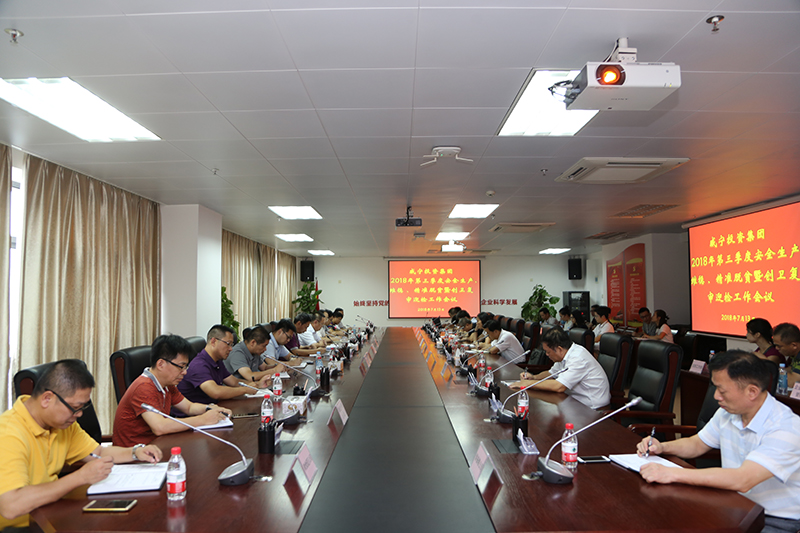2018年7月13日,集团公司党委副书记马超毅主持召开2018年第三季度安全生产、维稳 、精准脱贫暨创卫复审迎检工作会议。会议传达传达自治区、南宁市、市国资委2018年第三季度防范重特大安全事故工作电视电话会议精神,对集团2018年第二季度安全生产、维稳和精准脱贫及创卫复审迎检工作进行总结,并对2018年第三季度安全生产、维稳、精准脱贫及创卫复审迎检工作进行全面部署。